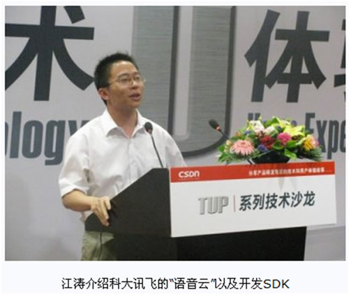 7月16日下午,CSDN TUP第十二期“移動開發(fā)技術(shù)沙龍:次世代人機(jī)交互接口及應(yīng)用開發(fā)”在中國科學(xué)院計(jì)算技術(shù)研究所一層報(bào)告廳舉行。本次活動邀請了微軟亞洲工程院軟件工程師馬寧、神念科技大中華區(qū)總裁張彤和科大訊飛副總裁江濤,分別在Kinect應(yīng)用開發(fā)、腦際接口技術(shù)的應(yīng)用和語音輸入交互三個方面進(jìn)行了演講和互動。現(xiàn)場爆滿,氣氛熱烈。