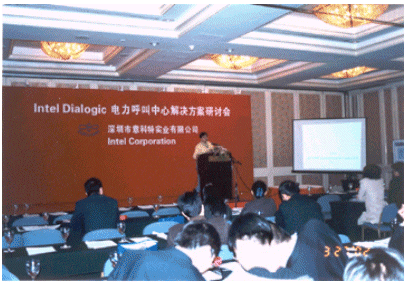 2002年3月27日,佳訊飛鴻公司參加了由美國(guó)Intel公司通訊業(yè)務(wù)事業(yè)部和深圳市意科特實(shí)業(yè)有限公司聯(lián)合主辦的“Intel Dialogic電力呼叫中心解決方案研討會(huì)”。公司技術(shù)總監(jiān)王曉暉在會(huì)上做了題為《電力客服系統(tǒng)與AnyTouch平臺(tái)》的報(bào)告,并針對(duì)電力行業(yè)的特點(diǎn),向與會(huì)者介紹了基于Intel Dialogic語(yǔ)音卡系列的呼叫中心解決方案以及可無(wú)縫升級(jí)為交換機(jī)和Internet呼叫中心解決方案。佳訊公司還向與會(huì)代表演示了基于公司自主研發(fā)的AnyTouch平臺(tái)的HDSI120路高密度語(yǔ)音卡呼叫中心系統(tǒng)。報(bào)告和演示得到了會(huì)議主辦單位和與會(huì)代表的關(guān)注。