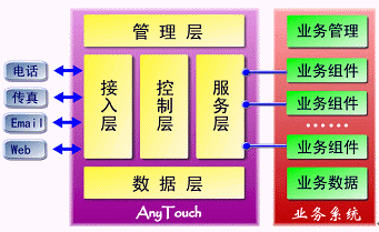 AnyTouch不僅僅是一個(gè)面向應(yīng)用開(kāi)發(fā)商、系統(tǒng)集成商的CTI中間件產(chǎn)品,而且提供支持最終用戶自我維護(hù)、開(kāi)發(fā)、編輯的業(yè)務(wù)接口與開(kāi)發(fā)工具包;贏nyTouch,可以根據(jù)不同的行業(yè)需求開(kāi)發(fā)出不同的業(yè)務(wù)應(yīng)用系統(tǒng),從而構(gòu)筑屬于自己的呼叫中心、企業(yè)增值服務(wù)、通訊服務(wù)、信息服務(wù)及CRM系統(tǒng)。
