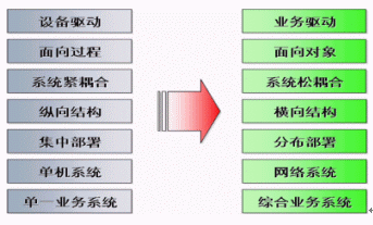 在這種趨勢下,要求軟件的結(jié)構(gòu)由縱向變?yōu)闄M向,從非平臺模式轉(zhuǎn)向平臺模式: