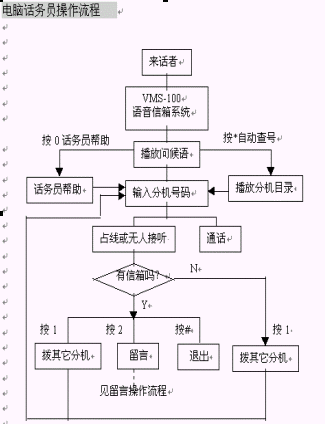 1. 在使用了VMS-100 Plus語音信箱服務(wù)器電腦話務(wù)員智能轉(zhuǎn)接功能的情況下,當(dāng)分機(jī)占線或無人接聽時(shí)如果您選擇了留言,系統(tǒng)便將您的電話接通至相應(yīng)的留言信箱。