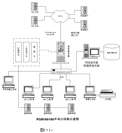 系統(tǒng)主要由計(jì)算機(jī)網(wǎng)絡(luò)、數(shù)字中繼接口、人工座席、語音處理及存儲(chǔ)、系統(tǒng)管理(數(shù)據(jù)庫管理+計(jì)費(fèi)管理+語音編輯)幾部分組成。如圖2·1所示: