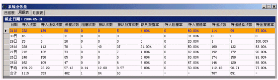 主要考察系統(tǒng)分項(xiàng)業(yè)務(wù)指標(biāo),如中繼線、分機(jī)、座席員、業(yè)務(wù)組等,便于了解系統(tǒng)運(yùn)行狀況