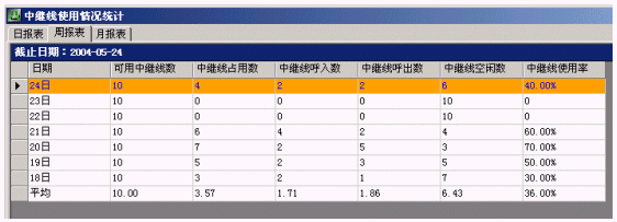 下圖是外線使用情況周報(bào)表: