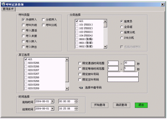 如圖所示,可以設(shè)定多種查詢條件組合,查找通話記錄。