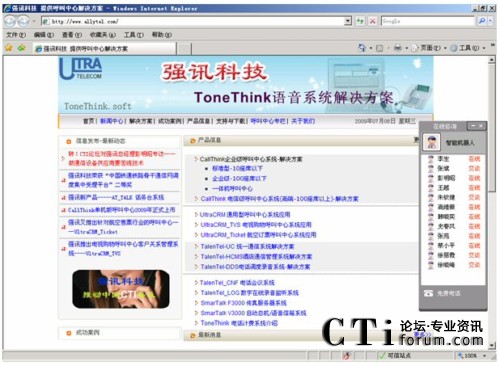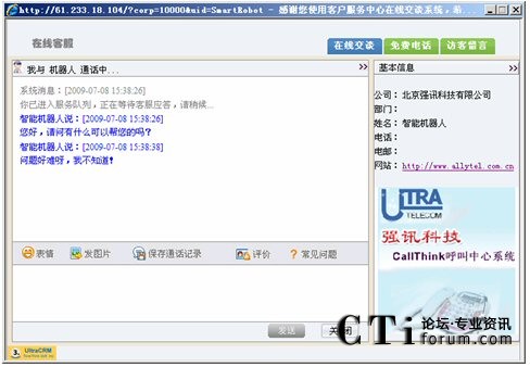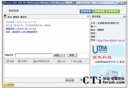 訪客可以通過點擊網(wǎng)站的 “客服”鏈接自動選擇交談對象或點擊“客服人員”進(jìn)行交談。