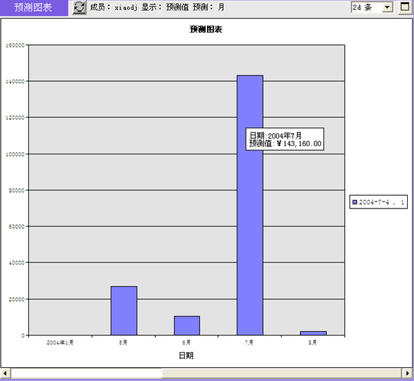 * 100% = 504,402.50元的一個預(yù)測值,在相同時間段的機會預(yù)測值將被累計求和。很顯然,可以在不同時間點(例如6月1日、7月1日、8月1日、9月1日)多次對2004年9月的銷售額進行預(yù)測。得到一系列的銷售預(yù)測值變動趨勢。
