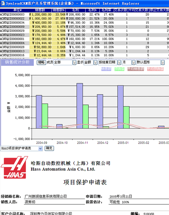 ,"可擴展樣式語言轉換")來制作。這種語言也是通用的,并且容易掌握。為了獲得更強大的功能,XSLT允許插入Javascript等一些其他語言或者插件。在這些語言的操縱下,結果樹的輸出形式是非常靈活的。下圖是國內知名的CRM軟件--SynleadCRM企業(yè)版將其XML數(shù)據(jù)源轉換成的一些報表和圖表: