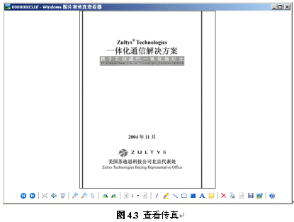 用戶可以顯示、保存、移動(dòng)、刪除、復(fù)制傳真,也可以回?fù)軅髡鎭?lái)電號(hào)碼。選擇顯示傳真時(shí),系統(tǒng)自動(dòng)調(diào)用圖片處理軟件打開傳真(不同的操作系統(tǒng)軟件或版本所帶軟件不同,下圖僅供參考)。