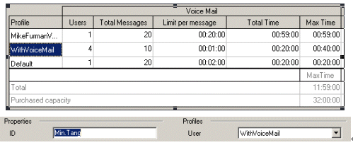 管理員可以指定用戶(分機(jī))是否具備語(yǔ)音郵箱功能,并可以指定用戶語(yǔ)音郵箱的屬性,如:語(yǔ)音郵件數(shù)量、時(shí)間長(zhǎng)度、總時(shí)間等。