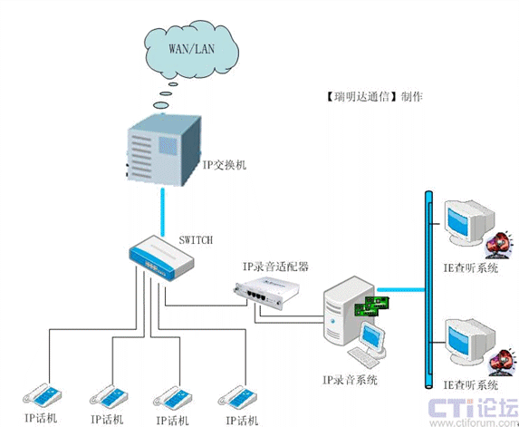 【瑞明達(dá)通信】是國內(nèi)較早從事專業(yè)計算機電話語音系統(tǒng)(CTI)產(chǎn)品的開發(fā)商, 在客戶交互式解決方案行業(yè)中有十多年的從業(yè)經(jīng)驗,具備雄厚的語音產(chǎn)品開發(fā)能力。最近幾年,基于 IP 的下一代通信,正在以前所未有的速度改變著全世界的通信架構(gòu)和商業(yè)格局。【瑞明達(dá)通信】作為錄音技術(shù)的領(lǐng)先廠商,就已經(jīng)具有前瞻性的潛心致力于基于IP通訊線路的多媒體記錄解決方案的研發(fā),RMD_VoIPlog錄音系統(tǒng)是由【瑞明達(dá)通信】自行開發(fā)研制的新一代IP錄音系統(tǒng)。該系統(tǒng)在記錄VoIP語音的同時,所需的語音資源通過軟件方式或硬件平臺直接由網(wǎng)絡(luò)中的RTP等數(shù)據(jù)流獲取,無須和座席分機或中繼線進(jìn)行并接,因此是一種軟件/硬件分別實現(xiàn)的錄音系統(tǒng),是真正的基于IP 的錄音解決方案。RMD_VoIPlog錄音系統(tǒng),是以數(shù)字記錄、數(shù)據(jù)庫查詢、光盤存儲等先進(jìn)技術(shù)為手段,為通話語音的錄制、管理提供了一種先進(jìn)、科學(xué)而又行之有效的方法。二、RMD_VoIPlog錄音系統(tǒng)運行環(huán)境