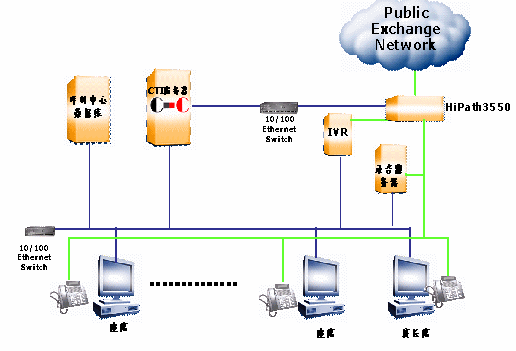 搜易得呼叫中心系統(tǒng)采用SIEMENS HiPath3000通信平臺(tái),融合了商路通公司(www.SynRoute.com)的CTI中間件,為呼叫中心系統(tǒng)的應(yīng)用開發(fā)提供了功能完善、系統(tǒng)穩(wěn)定、可靠性高、擴(kuò)展性強(qiáng)等特點(diǎn)的呼叫中心開發(fā)平臺(tái)。根據(jù)客戶業(yè)務(wù)需求實(shí)現(xiàn)呼叫中心系統(tǒng)主要功能:自動(dòng)語音應(yīng)答、ACD分配、統(tǒng)計(jì)報(bào)表、監(jiān)控、錄音等;其中呼叫中心平臺(tái)中的業(yè)務(wù)系統(tǒng)還包含了客戶資料管理、產(chǎn)品資料管理、售后服務(wù)管理、售前支持管理、問卷調(diào)查管理、訂單監(jiān)督管理。整套系統(tǒng)很好地滿足了該中心的業(yè)務(wù)需求。