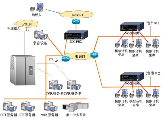 在河北地稅12366原有設(shè)備的基礎(chǔ)上,增加了一臺(tái)ICC PBX,開(kāi)放了若干端口,并在坐席計(jì)算機(jī)上部署了ICC終端軟件,將12366傳統(tǒng)的第四代呼叫中心,升級(jí)為第五代呼叫中心。