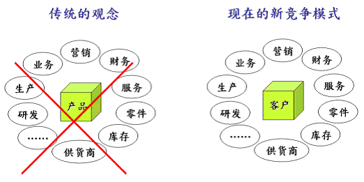 在CRM系統(tǒng)架構(gòu)中,如何持續(xù)和客戶保持好關(guān)系、進(jìn)而提高客滿意度是最主要目標(biāo)之一,也是客戶關(guān)系管理架構(gòu)的核心價(jià)值所在,F(xiàn)在企業(yè)的競爭模式已經(jīng)從以往以產(chǎn)品為中心的思考模式,轉(zhuǎn)變到以客戶為中心的思考模式。(如圖一)