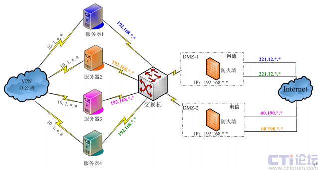 安邦保險在全國各地共37個分支機(jī)構(gòu),網(wǎng)絡(luò)結(jié)構(gòu)復(fù)雜,有電信用戶、網(wǎng)通用戶以及VPN專網(wǎng)用戶等,系統(tǒng)平臺的搭建要能夠?qū)崿F(xiàn)不同網(wǎng)絡(luò)間實(shí)時快速的溝通。