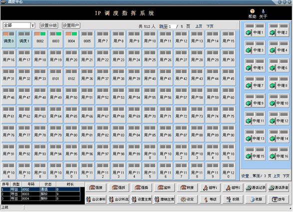 調度臺可顯示用戶、中繼的工作狀態(tài),所有狀態(tài)一目了然,調度員可方便的運用強插、強拆等功能