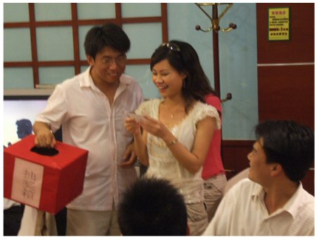 在聚餐接近尾聲的時候開始了激動人心的抽獎活動,本次共產(chǎn)生8個大獎。每個中獎同仁都獻歌一曲,從而使活動的氣氛達到了高潮。