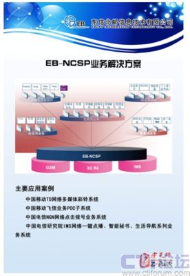 本次參展的EB-NCSP是由EB自主研發(fā),可在PLMN/3G/NGN網(wǎng)絡(luò)上商用的核心業(yè)務(wù)平臺,本系統(tǒng)面向國內(nèi)電信運(yùn)營商和眾多的增值服務(wù)提供商及虛擬運(yùn)營商,獨(dú)立于底層通信網(wǎng)絡(luò),提供典型的增值業(yè)務(wù),提供增值服務(wù)的開放業(yè)務(wù)接口。EB-NCSP主要包括:應(yīng)用服務(wù)器AS、媒體服務(wù)器MS,是一個功能完備并開放的應(yīng)用平臺。本系統(tǒng)提供規(guī)范而靈活的API接口,支持SIP協(xié)議、中國INAP/CAP/MAP/ISUP/BICC/H.248/CMPP協(xié)議規(guī)范等;全面支持移動網(wǎng)絡(luò)向下一代網(wǎng)絡(luò)-3G發(fā)展所需要的語音、數(shù)據(jù)、多媒體等智能和增值業(yè)務(wù)的平臺,從而實(shí)現(xiàn)真正的跨網(wǎng)絡(luò)的、綜合的、以用戶為中心的業(yè)務(wù)提供平臺。