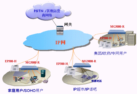 MG3000-R用戶(hù)駐地網(wǎng)關(guān)可以基于IP網(wǎng)絡(luò)提供優(yōu)質(zhì)的分組化語(yǔ)音流,使話(huà)音、傳真、數(shù)據(jù)在同一IP網(wǎng)絡(luò)中傳送。