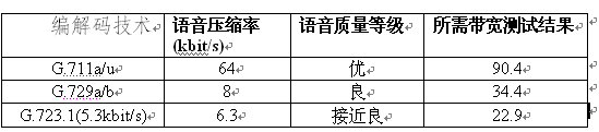 實際通話占用帶寬可以參考下表: