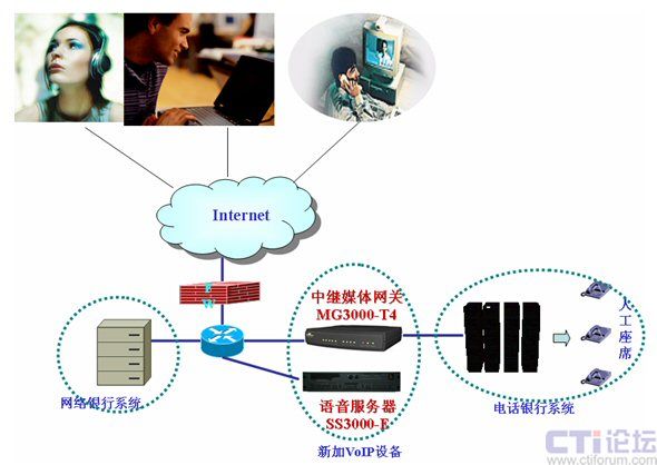 提高安全性,平臺(tái)位于防火墻后,不設(shè)公網(wǎng)地址:眾所周知,VoIP的通話必須要有一個(gè)在公網(wǎng)上的平臺(tái)來控制。但由于銀行方面的安全性要求,軟交換平臺(tái)必須位于防火墻之后,并且不能配置真實(shí)的公網(wǎng)IP。為了適應(yīng)此要求,高鴻公司的軟交換平臺(tái)支持NAT后的工作模式。