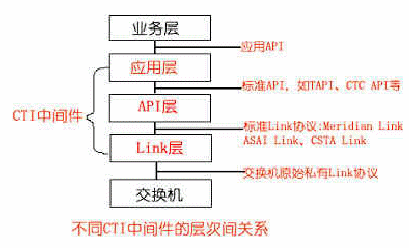 根據(jù)CTI的功能定位,我們可以把CTI產(chǎn)品劃分為不同的層次,一般地可分為三種類型:Link層產(chǎn)品、API層產(chǎn)品、應(yīng)用層產(chǎn)品,其分層結(jié)構(gòu)示意圖如下所示: