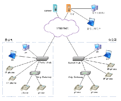 3. 企業(yè)員工無論在何處,只要接入Internet網(wǎng),就可與企業(yè)總部和分支機構(gòu)進行"零"話費通信