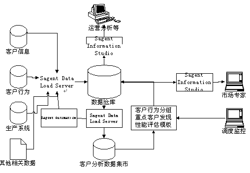 易虹eCRM解決方案,采用Sagent Real Time e-Business Solution作為數(shù)據(jù)倉(cāng)庫(kù)建設(shè)平臺(tái)。Sagent Solution提供了數(shù)據(jù)倉(cāng)庫(kù)建設(shè)、數(shù)據(jù)分析和數(shù)據(jù)倉(cāng)庫(kù)管理的全套的工具。利用這些工具,用戶可以快速地實(shí)現(xiàn)數(shù)據(jù)倉(cāng)庫(kù)和客戶分析系統(tǒng)。