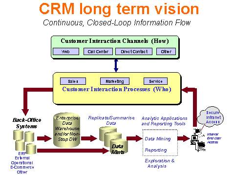 傳統(tǒng)企業(yè)管理的著眼點(diǎn)往往在后臺(tái),ERP系統(tǒng)幫助它們實(shí)現(xiàn)了這種內(nèi)部商業(yè)流程的自動(dòng)化,提高了生產(chǎn)效率。而對(duì)于前臺(tái),往往重視得不夠,面對(duì)諸如:哪種產(chǎn)品最受歡迎、原因是什么、有多少回頭客、哪些客戶是最賺錢的客戶、售后服務(wù)有哪些問題等,大部分企業(yè)還只能依靠經(jīng)驗(yàn)來推測(cè)。而CRM是對(duì)傳統(tǒng)ERP概念向外的延伸,作為專門管理企業(yè)前臺(tái)的軟件,提供了一個(gè)收集、分析和利用各種客戶信息的系統(tǒng),幫助企業(yè)充分利用其客戶關(guān)系資源,也為企業(yè)在電子商務(wù)時(shí)代從容自如地面對(duì)客戶提供了科學(xué)手段和方法。使企業(yè)充分共享內(nèi)部的資源,通過一個(gè)統(tǒng)一的視角,借助多渠道的方式與其客戶進(jìn)行交流。