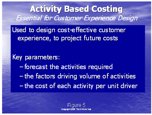 通過(guò)了解圖8,我們將以行動(dòng)成本管理大體是什么的總括作為結(jié)束。我們從左邊的成本驅(qū)動(dòng)因素開(kāi)始——這是做工作的原因,例如:獲得客戶,維持客戶。就如圖4中所說(shuō)的,這些成本驅(qū)動(dòng)因素可以細(xì)分到工作行動(dòng)上去?梢酝ㄟ^(guò)描述人,培訓(xùn),設(shè)備和技術(shù)資源來(lái)組成工作行動(dòng)。資源驅(qū)動(dòng)因素被用于分配這些企業(yè)成本到各個(gè)行動(dòng)上去。下一步就是系統(tǒng)地確定行動(dòng)驅(qū)動(dòng)因素,分配行動(dòng)成本到成本對(duì)象上去,這有利于決策的制定。例如,獲得一個(gè)客戶和維持一個(gè)客戶需要花費(fèi)多少的成本?