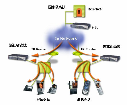 MCU視頻會議交互平臺,組成了由24臺RADVISION MCU實現(xiàn)的最高法院-22個省級法院-地(市)法院的3級視頻會議網(wǎng)絡(luò)。RADVISION建設(shè)的視頻會議系統(tǒng),既可以實現(xiàn)每個省單獨同時或分時靈活組建省—地(市)兩級視頻會議,也可以召開最高法院—22個省級法院—地(市)法院的3級視頻會議,并實現(xiàn)了最高法院對地(市)法院視頻會議終端的直接控制和管理。