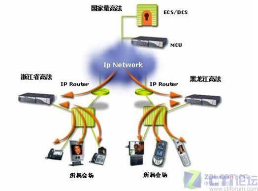 浙江省高等法院的應(yīng)用只是一個(gè)縮影,據(jù)了解,在全國(guó)法院系統(tǒng)在最高人民法院的示范作用下,各省級(jí)高等法院已經(jīng)紛紛應(yīng)用RADVISION視頻會(huì)議系統(tǒng),全面構(gòu)造省級(jí)法院到地(市)級(jí)法院的二級(jí)檢察院視頻會(huì)議網(wǎng)絡(luò)。目前全國(guó)已經(jīng)有22個(gè)省成功建造了省級(jí)法院RADVISION MCU視頻會(huì)議交互平臺(tái),組成了由24臺(tái)RADVISION MCU實(shí)現(xiàn)的最高法院-22個(gè)省級(jí)法院-地(市)法院的三級(jí)視頻會(huì)議網(wǎng)絡(luò)。RADVISION建設(shè)的視頻會(huì)議系統(tǒng),既可以實(shí)現(xiàn)每個(gè)省單獨(dú)同時(shí)或分時(shí)靈活組建省—地(市)兩級(jí)視頻會(huì)議,也可以召開最高法院—22個(gè)省級(jí)法院—地(市)法院的3級(jí)視頻會(huì)議,并實(shí)現(xiàn)了最高法院對(duì)地(市)法院視頻會(huì)議終端的直接控制和管理。