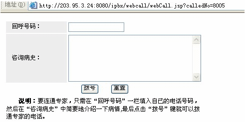 Call直接與專家坐席通話,與專家溝通自己的病情和對藥物的需求,尋求專家的指導(dǎo)和建議。而沒有耳機(jī)和麥克風(fēng)配置的消費(fèi)者則可以輸入自己家中或者手機(jī)的號(hào)碼,享受回呼服務(wù),一樣不用支付電話費(fèi)就得到企業(yè)專家的電話服務(wù)。