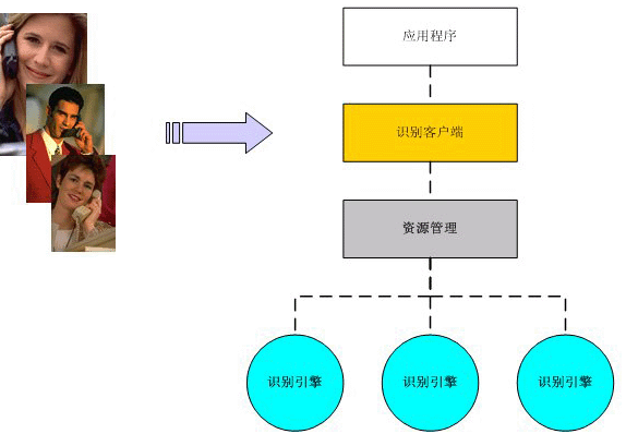 一個(gè)語音識(shí)別系統(tǒng),主要包含有語音識(shí)別的客戶端模塊、資源管理模塊、識(shí)別引擎以及與應(yīng)用相對(duì)應(yīng)的應(yīng)用程序。