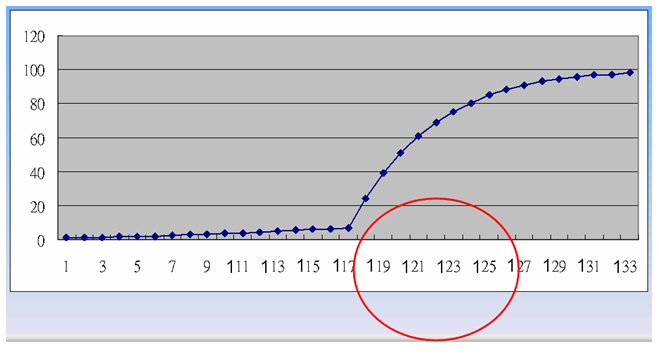這個呼叫中心從一只貓沒有,一直增加到117人之前,服務(wù)水平幾乎連一動也不動,但只要人數(shù)增加到118人以后,服務(wù)水平突然猛烈上升,一直到128人才緩慢下來,這時服務(wù)水平已經(jīng)上升到93,后面的變化就跟117人之前很像,不管再增加多少人,服務(wù)水平的增加都非常有限。 這就是呼叫中心現(xiàn)場管理遇到最奇妙的[關(guān)鍵少數(shù)]的問題。 一個140人的呼叫中心,盡然只有118到128這中間10個人才真正讓服務(wù)水平起了重大變化,而且變化的這么劇烈。