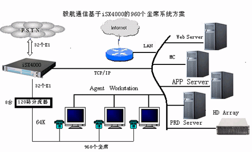 基于iSX4000構(gòu)建的大容量坐席拓撲圖