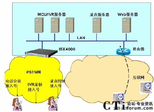 STOP SERVICE)平臺,是當前和未來電信運營商(TCO)及虛擬服務(wù)提供商(SP/CP)增值業(yè)務(wù)規(guī)劃的最佳選擇,特別是中國重組后的3大運營商都具備全業(yè)務(wù)運營資格,正在規(guī)劃前所未有的全業(yè)務(wù)運營平臺(融合有線和無線、融合語音和數(shù)據(jù)、融合2G和3G、融和傳統(tǒng)PSTN和NGN網(wǎng)絡(luò)、融合電信網(wǎng)和互聯(lián)網(wǎng)),怎樣的設(shè)備才能問鼎和支撐這樣的全業(yè)務(wù)平臺?不妨仔細研究ISX4000的豪華單機和級聯(lián)配置:單機支持最大128E1(SS7、PRI)光電接口接入、4096路語音資源、4096路會議資源、多達6464路IP(G.711-6464路、G.729-2688路、G.723-2048路)、768路傳真資源、1280路FSK資源(用于E-POS)、1024路視頻資源。通過簡單易用的管理維護工具OAM可以對上述資源任意組合、動態(tài)配置、平滑升級。不僅如此,ISX4000本機同步配置的DSP采用高性能的回聲消除和音質(zhì)增強(EC