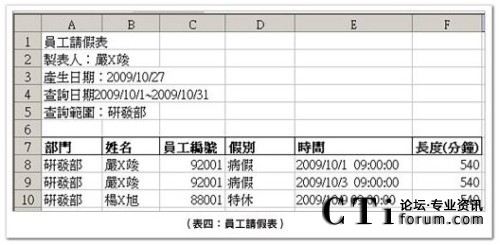 此表主要呈現(xiàn)員工請假明細,用于現(xiàn)場管理時,主管審核座席員臨時請假的核可依據(jù),以及結算考勤或是考核時的查核數(shù)據(jù)。