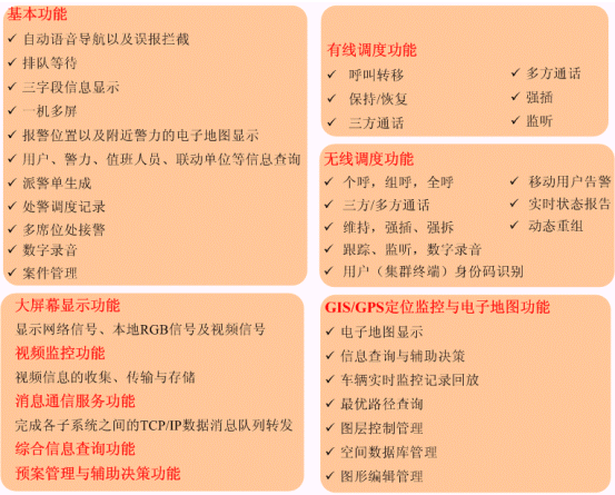 集中管理控制、分級(jí)處理、多業(yè)務(wù)處理功能;信息靈敏、資源共享、指揮有力、規(guī)范有序。