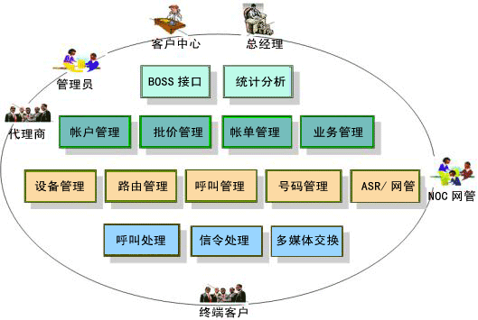 | 呼叫處理 | 設(shè)計(jì)原則: 處理接受終端用戶的呼叫請(qǐng)求。 代理向policy請(qǐng)求呼叫認(rèn)證系統(tǒng) 中每一個(gè)呼叫,負(fù)責(zé)上報(bào)給policy,并接受policy的指示。 功能: 設(shè)備管理:包括:設(shè)備信息管理、設(shè)備號(hào)碼管理、用戶的路由策略決定,統(tǒng)計(jì)分析、綜合查詢等等。 路由管理:為管理者全方位地管理系統(tǒng)擁有的路由資源,并對(duì)這些資源進(jìn)行開發(fā)提供決策支持。如為不同的客戶不同的要求,提供最適合的路由組合。 呼叫管理:監(jiān)控系統(tǒng)現(xiàn)在正在進(jìn)行的通話,讓管理者實(shí)時(shí)了解系統(tǒng)當(dāng)前的業(yè)務(wù)狀況。 ASR統(tǒng)計(jì):讓管理員實(shí)時(shí)了解系統(tǒng)的近一段時(shí)間的各類用戶,各路由的接通率,平均通話時(shí)長等。 網(wǎng)管:提供管理員管理每個(gè)設(shè)備的信息,并提供遠(yuǎn)程登錄管理到Internet上任何注冊(cè)到系統(tǒng)上的設(shè)備。 帳戶管理:管理系統(tǒng)中的每一個(gè)帳戶,支持多級(jí)的帳戶管理。上一級(jí)可以依據(jù)權(quán)限對(duì)下一級(jí)進(jìn)行管理。 批價(jià)管理:為各種帳戶提供與其相適應(yīng)的價(jià)格策略,以最低的成本最有效地激勵(lì)客戶。如定制打折,套餐等不同的定價(jià)策略. 帳單管理:為每個(gè)帳戶提供定時(shí)準(zhǔn)確帳單收據(jù)?缮 Word、Excel、txt 等不同格式的帳單明細(xì)報(bào)表和統(tǒng)計(jì)報(bào)表。 業(yè)務(wù)管理:為每個(gè)用戶提供各種不同用戶所需要的業(yè)務(wù),并能快速的提供新的業(yè)務(wù)。如呼叫轉(zhuǎn)移,呼叫等待等業(yè)務(wù)。 |