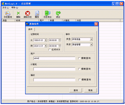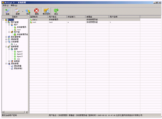 控制臺(tái)由七個(gè)功能模塊組成:錄音監(jiān)控、錄音管理、系統(tǒng)管理、統(tǒng)計(jì)報(bào)表、排班管理、備份管理、日志管理。Netlog系統(tǒng)中控制臺(tái)是一個(gè)統(tǒng)一配置和管理的平臺(tái),可以部署在網(wǎng)絡(luò)內(nèi)的任意一臺(tái)主機(jī)上,各個(gè)功能模塊都可以單獨(dú)工作,也可以同時(shí)使用,控制臺(tái)所有模塊可以通過系統(tǒng)導(dǎo)航(ToolBar)來引導(dǎo)啟動(dòng)。