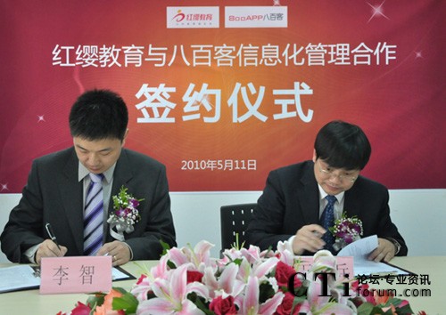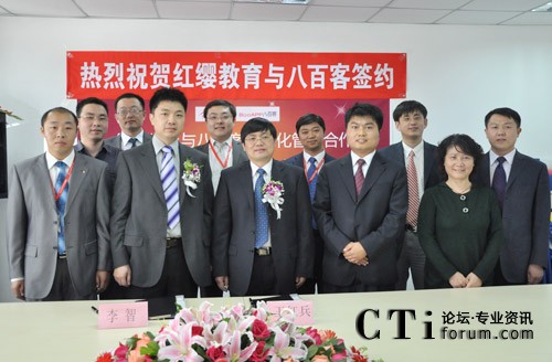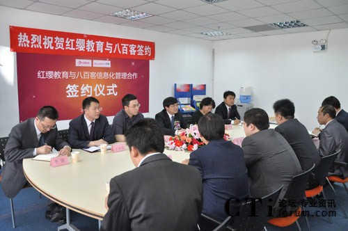 簽約當(dāng)日,八百客與紅纓教育在北京中關(guān)村軟件園舉辦隆重的“信息化管理啟動會”。紅纓總經(jīng)理王紅兵、八百客CEO李智等參加此次項(xiàng)目的啟動會。