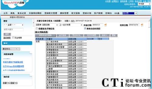 “廣撒網(wǎng)式的企業(yè)營(yíng)銷方式很難找到真正的目標(biāo)客戶,而利用搜索引擎則更貼近客戶的主觀需求,通過(guò)投放關(guān)鍵詞,讓目標(biāo)客戶主動(dòng)出現(xiàn)!崩铐翟谘葜v中指出,“企業(yè)通過(guò)百度后臺(tái)可以看到每個(gè)關(guān)鍵字花了多少錢,被點(diǎn)擊了多少次,但卻無(wú)法統(tǒng)計(jì)關(guān)鍵字所帶來(lái)的收入。為了更好的達(dá)到關(guān)鍵詞廣告投入效果,八百客800APP—CRM系統(tǒng)與百度API接口對(duì)接,實(shí)現(xiàn)集成,這樣便可以輕松獲知客戶的關(guān)鍵字來(lái)源。通過(guò)800APP后臺(tái)系統(tǒng)所做的統(tǒng)計(jì)報(bào)表,可以清晰的看到通過(guò)哪個(gè)關(guān)鍵字獲得多少注冊(cè)客戶、多少成交客戶、多少匯款額,然后綜合對(duì)比每個(gè)關(guān)鍵詞的性價(jià)比,關(guān)掉不賺錢的關(guān)鍵字,將錢花在賺錢的關(guān)鍵字上。而且根據(jù)800APP系統(tǒng)所做的統(tǒng)計(jì)數(shù)據(jù),可以做出市場(chǎng)投入與產(chǎn)出的預(yù)期增長(zhǎng)曲線。通過(guò)800APP系統(tǒng)與百度集成,可以輕松達(dá)到市場(chǎng)投入不變,效果成倍增長(zhǎng)的目的。”
