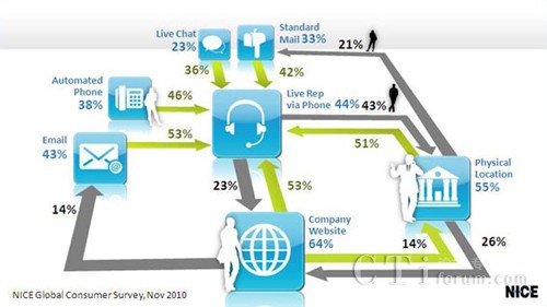 NICE最近宣布了其客戶渠道偏好調(diào)查的主要發(fā)現(xiàn),調(diào)查對(duì)象為美國(guó)、英國(guó)和澳大利亞境內(nèi)年齡段在18歲至65歲的2000多人。該調(diào)查分析了他們與金融服務(wù)、電信、零售、旅游、保險(xiǎn)及公用事業(yè)等行業(yè)之間的首選聯(lián)絡(luò)渠道。調(diào)查顯示客戶往往依靠網(wǎng)絡(luò)、互動(dòng)式語(yǔ)音應(yīng)答渠道(IVR)、聊天工具或者電子郵件作為與企業(yè)或服務(wù)供應(yīng)商的首要接觸點(diǎn)。然而,如果他們無(wú)法在首次聯(lián)絡(luò)過(guò)程中解決問(wèn)題,則客戶聯(lián)絡(luò)中心便成為解決問(wèn)題的二級(jí)渠道。