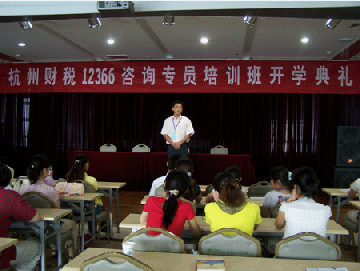 圖為杭州財稅12366咨詢專員培訓班開學典禮上杭州財稅局人事處領導講話