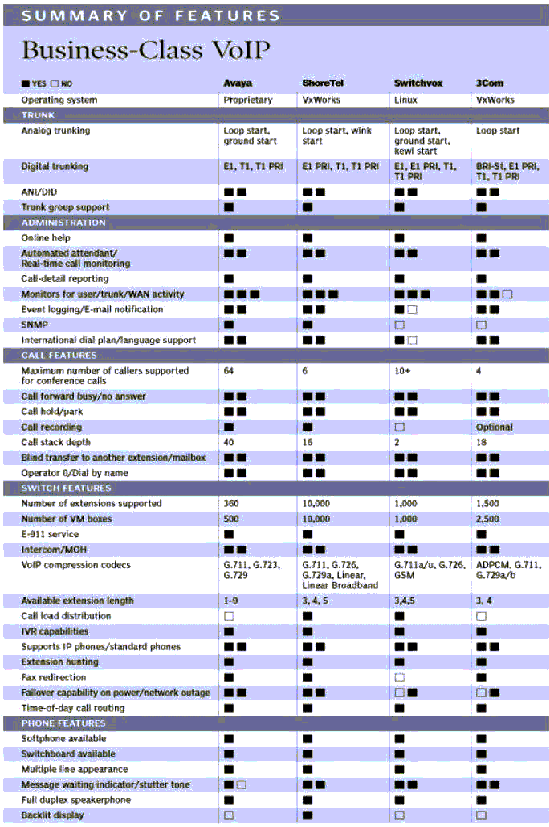 附:第三方測評。美國著名計(jì)算機(jī)雜志《PC Magazine》在2005年第11期發(fā)表了其對當(dāng)前流行的企業(yè)級VoIP電話系統(tǒng)第三方測評結(jié)果,以下是原文掃描摘錄: