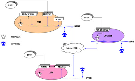 建立起VoIP后,可節(jié)省總分支機構之間的國際、國內長途、農話。各點之間互發(fā)傳真。并且在將來和總部之間IP語音網絡互連,形成覆蓋全國的IP電話網絡。IP語音網絡除了提供集團內部辦公、業(yè)務和技術支持通話以外,也適應數(shù)據集中后,各種投訴電話、呼叫中心等用戶電話的接入,客戶和商戶不必撥打電話到總部,只需撥打本地IP語音網關,大大降低運營成本。