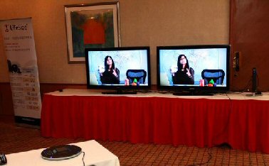 為了更好地展示新一代視頻系統(tǒng),LifeSize公司現(xiàn)場(chǎng)接通了美國總部的視頻會(huì)議畫面,畫面逼真流暢。LifeSize公司創(chuàng)始人、首席執(zhí)行官Craig