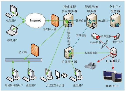 視維系統(tǒng)是一個(gè)基于IP網(wǎng)絡(luò)的綜合業(yè)務(wù)通訊平臺(tái),通過多網(wǎng)絡(luò)接入方式實(shí)現(xiàn)網(wǎng)通、電信、聯(lián)通等用戶間高速互通;通過H.323模塊將企業(yè)內(nèi)部原有的硬件設(shè)備與視維系統(tǒng)鏈接起來(lái),有效的節(jié)約了投資;其他如SIP模塊,短信模塊,固網(wǎng)電話接入等都可以根據(jù)用戶需要進(jìn)行擴(kuò)展。視維系統(tǒng)可以支持分布式視頻服務(wù)器集群,可利用企業(yè)內(nèi)部網(wǎng)絡(luò)或者互聯(lián)網(wǎng)構(gòu)建超大規(guī)模企業(yè)綜合通訊平臺(tái);凇懊嫦蚍⻊(wù)體系架構(gòu)(SOA)”設(shè)計(jì)架構(gòu),實(shí)現(xiàn)很靈活地方便地與其業(yè)務(wù)系統(tǒng)如OA,HR,CRM,