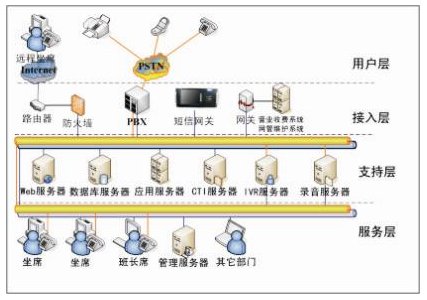 本方案采用多媒體統(tǒng)一服務的呼叫中心中間件,不僅支持傳統(tǒng)的PBX系統(tǒng),而且支持最新的IP PBX融合通信系統(tǒng),使小型呼叫中心也可以享受到以前只有大型呼叫中心才具備的系統(tǒng)功能,滿足企業(yè)對CTI技術日新月異的需求,為企業(yè)提供強大、穩(wěn)定、高性價比的CTI平臺。